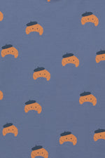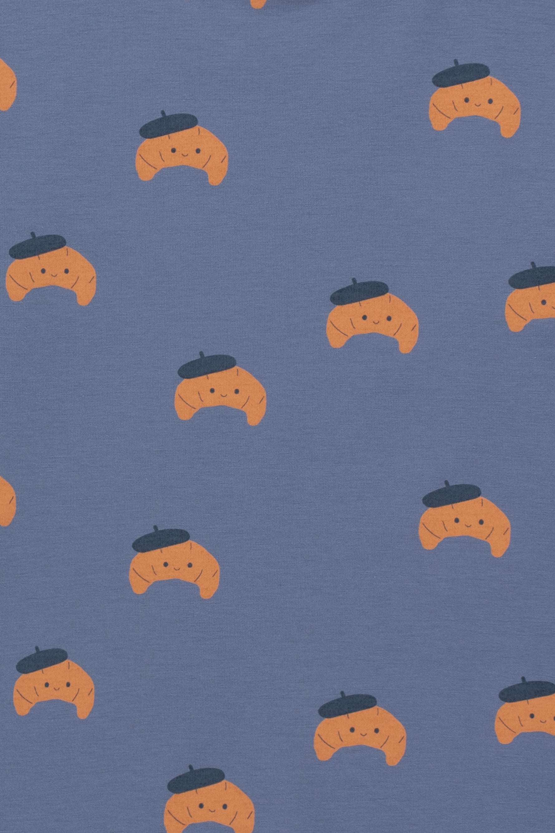 Croissants print on a light navy blue base pant. It comes with an elasticated waistband.