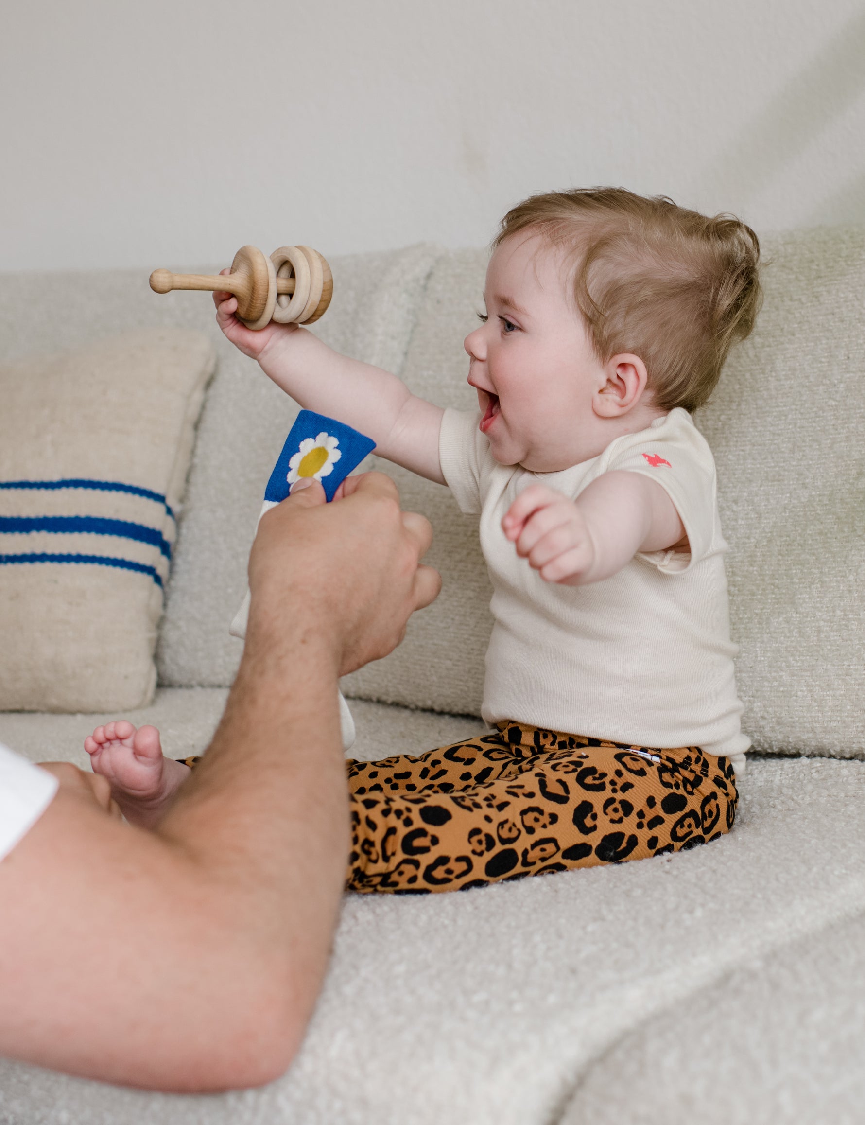Leggings with Leopard-print made in soft TENCEL™ Lyocell with a hint of stretch for comfort. Featuring a sewn-on Mini Rodini Panda label in the front. The leggings are designed in Mini Rodini’s newborn-model, made to fit the littlest ones. They feature soft cuffs at the ankles and a wide waistband that keeps them in place. The waist and cuffs can be unfolded as the child grows, prolonging the lifespan of the garment.