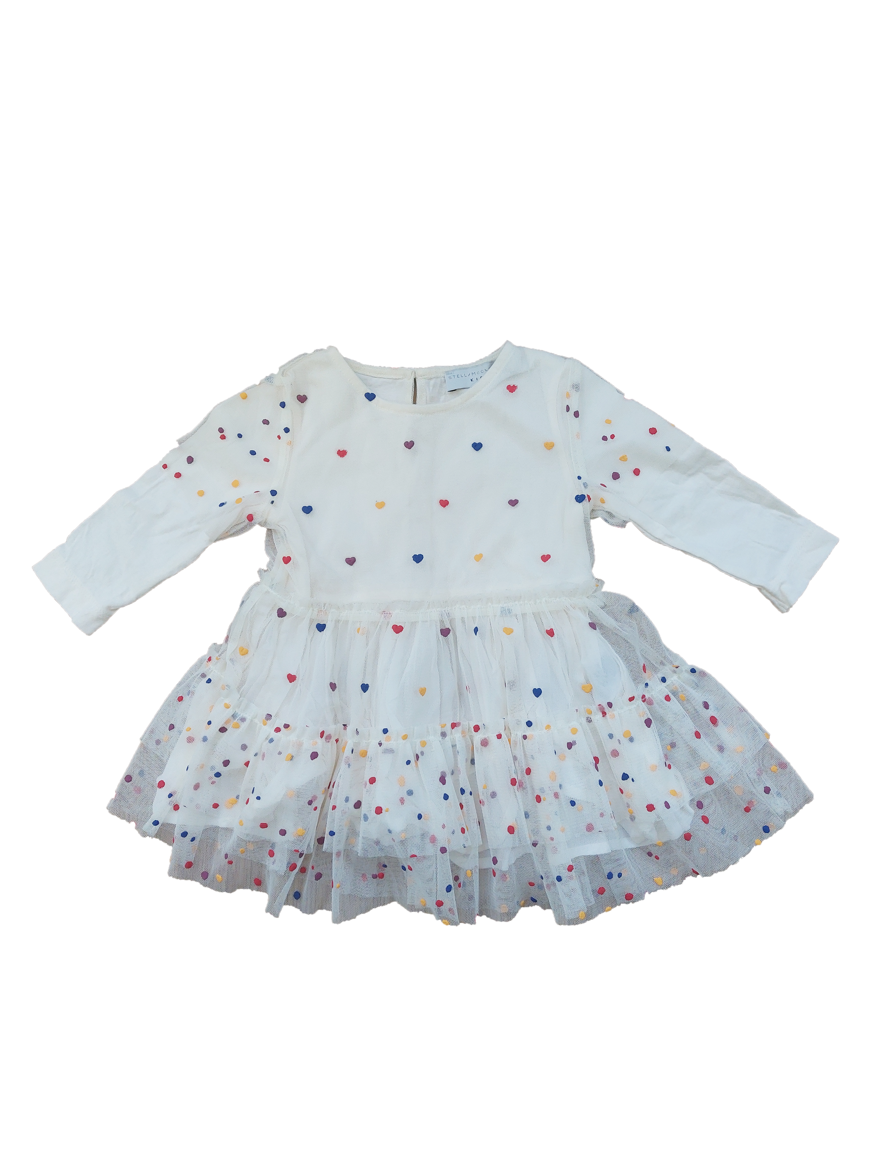 Unit price per"HEART patterned dress with long sleeves and a tulle outer layer by Stella McCartney.