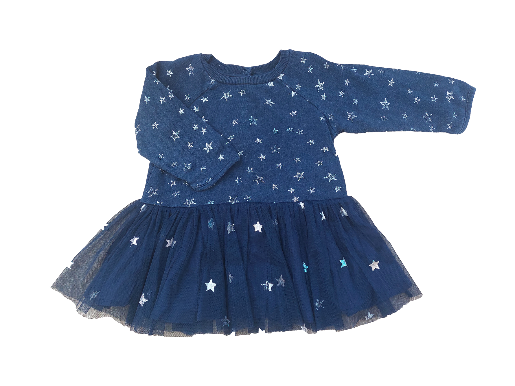 "STAR patterned dress with long sleeves by Stella McCartney. The stars are a bit faded on the top part.