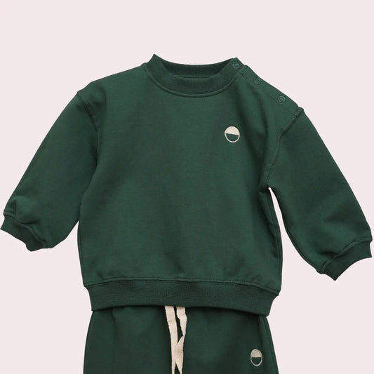 Offer your kid the joy of playful movement with our pineneedle color loose fit sweaters. They are all about softness and comfort. YoungYarn baby sweater's relaxed style and unique Pineneedle shade make pairing with different tops a breeze. Match them with our Pineneedle baby pants, or mix with bottoms like our Pine Stripes leggings or undyed leggings with Turkish fruit or vegetable designs. It's all about crafting your kid's signature look!