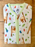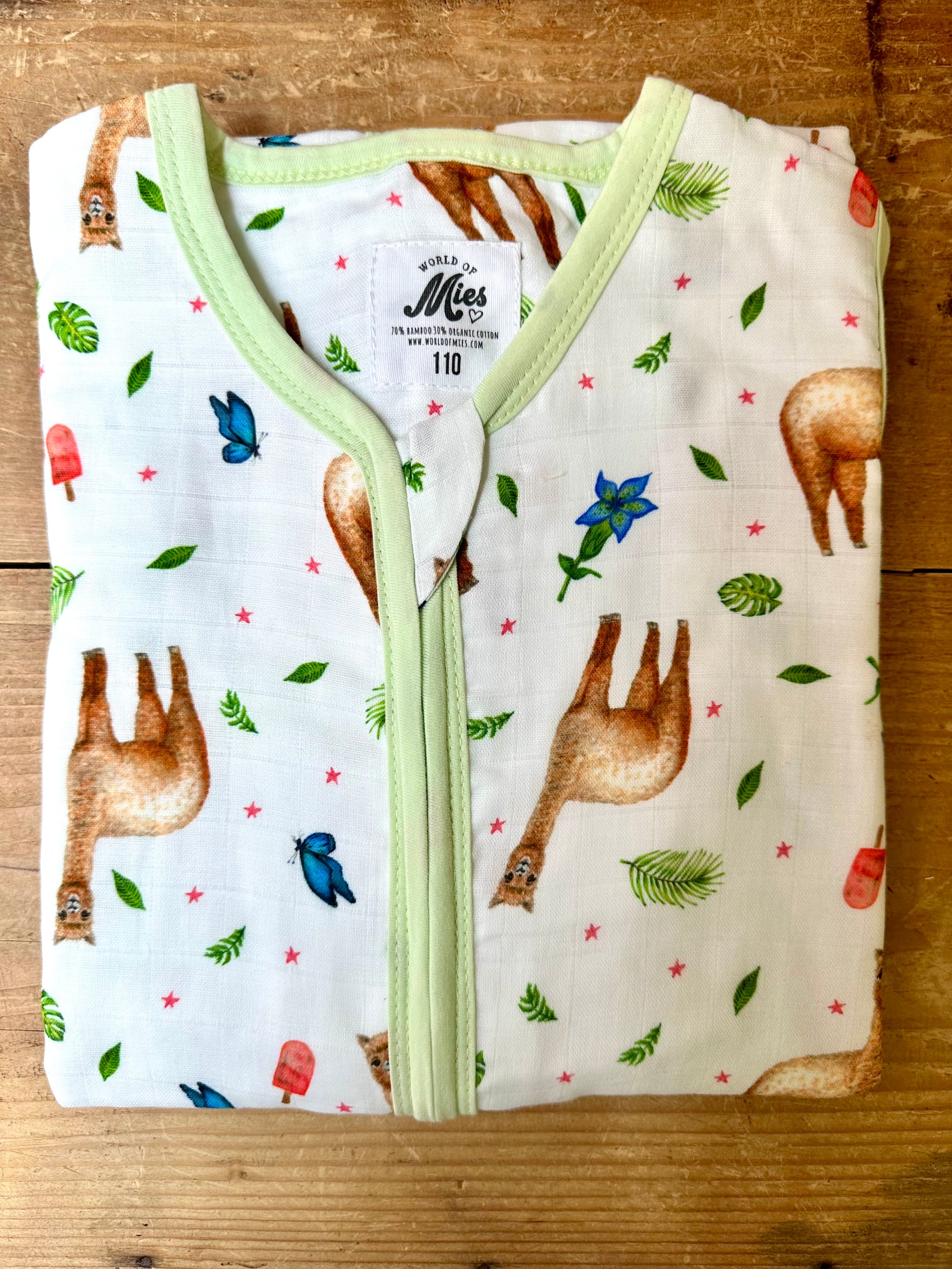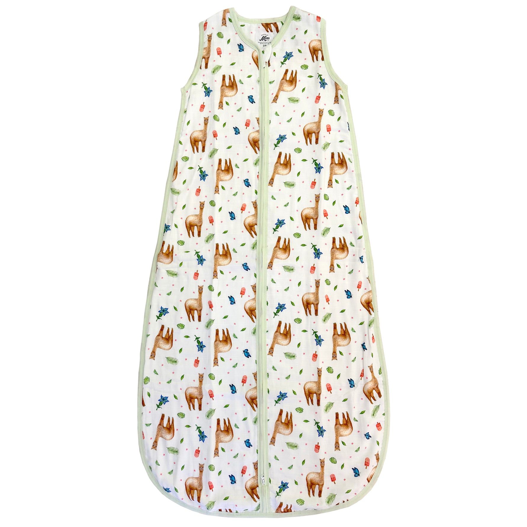 Super soft baby sleeping bag of hydrophilic fabric with cute alpaca pattern. The print is painted by Mies with watercolour. Very nice to give as a maternity present or birthday present. Or to give yourself something unique for your own baby outfit. The sleeping bag is nice and airy, ideal for the warmer summer nights.
