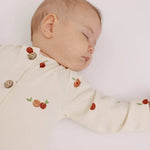 Our undyed organic cotton one-piece in Apricots is a practical and eco-friendly choice for your baby. Undyed cotton preserves the natural purity of the fabric, ensuring no chemicals or dyes come in contact with your baby's sensitive skin. This one-piece is practical for babies, providing ease of movement and all-in-one warmth, making it an ideal outfit for both play and rest. It features easy-to-use coconut buttons and a cute pocket on the back, adding functional and aesthetic details. Every purchase of this onesie helps us celebrate and support our ethical partners in Turkey, contributing to our mission of promoting sustainable children’s wear.