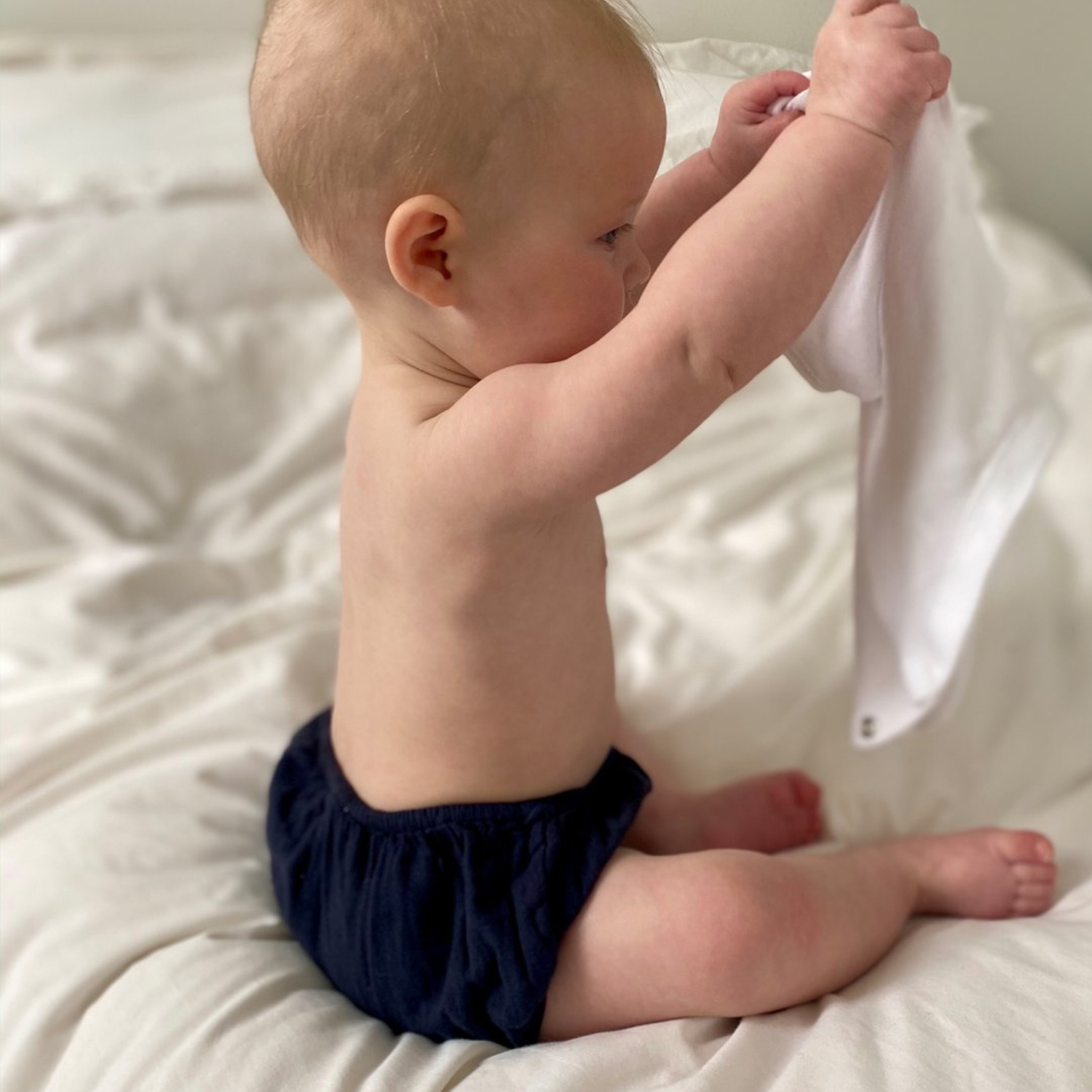 Die Höschen GABRIEL sind aus superweicher Bio-Baumwolle gefertigt, die sanft zu zarter und empfindlicher Haut ist, und verfügen über elastische Taillen- und Beinöffnungen für eine bequeme Passform.