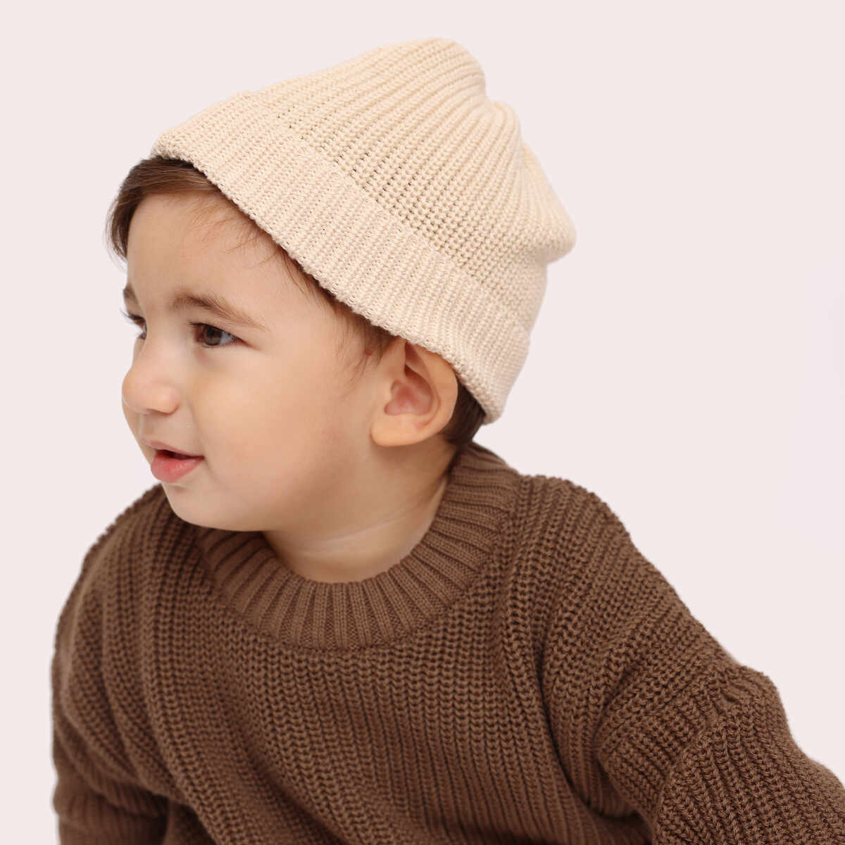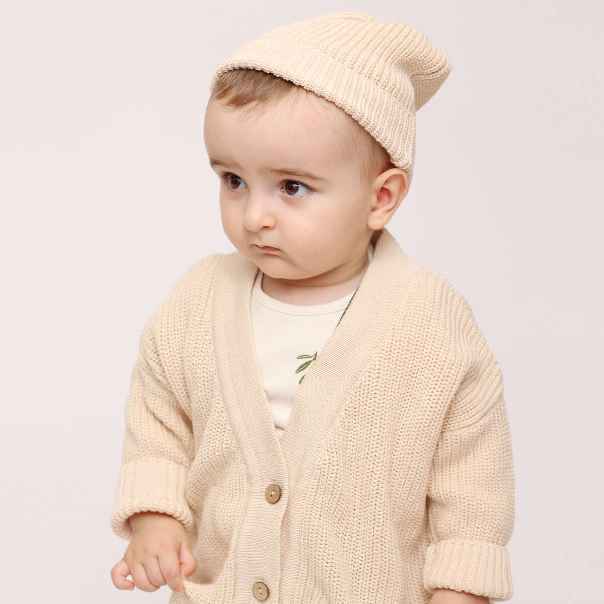 Unsere Strickkollektion ist langlebig und vielseitig einsetzbar. Sie besteht aus 100 % GOTS-zertifizierter Bio-Baumwolle, ist sanft zur Haut Ihres Kindes und frei von schädlichen Chemikalien. Diese natürlich gestrickte Mütze passt zu verschiedenen Outfits und ist eine vielseitige Ergänzung für die Garderobe Ihres Kindes.