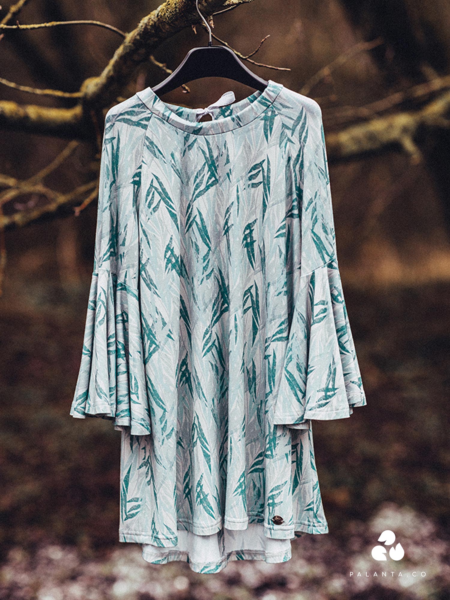 Das Kleid BIANCA ist ein schlichtes, bequemes A-Linien-Kleid. Eine kreisförmige, dekorative Rüsche an den Ärmeln verleiht dem Kleid Eleganz und Eleganz. Bianca wird hinten mit einer verzierten Kordel gebunden. Der einzigartige Bambusstoff ist wärmeisoliert und perfekt für wechselhaftes Herbstwetter.