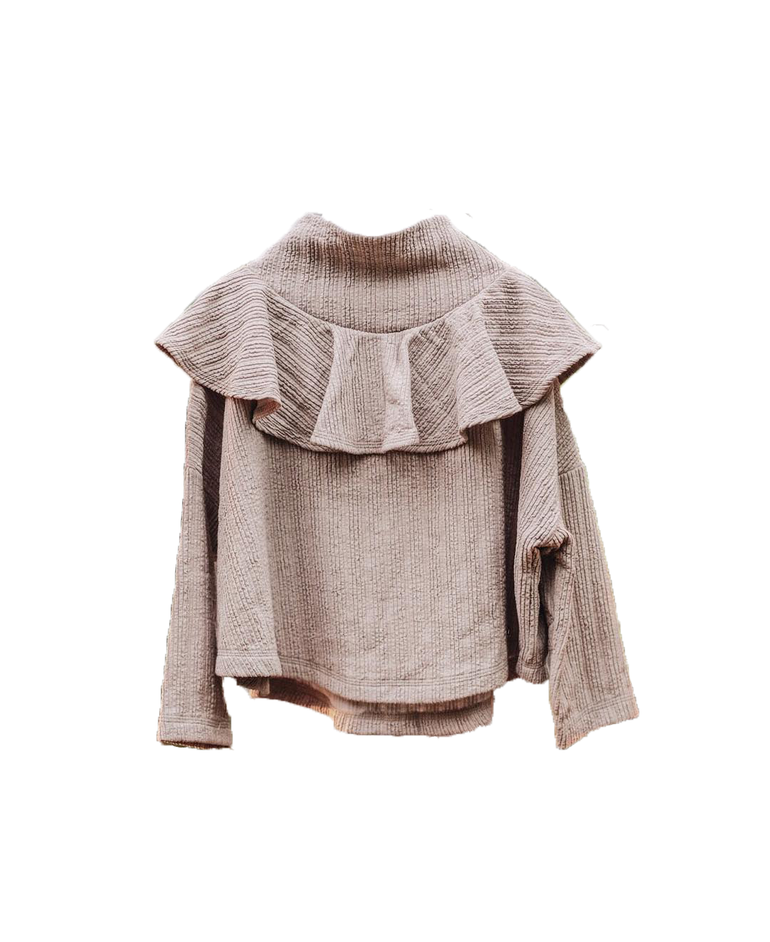 „Die Bluse GIANNA ist eine Kombination aus bequemer, lässiger Form und plissierter Stoffstruktur. Das Oberteil wird durch einen erweiterten Rollkragen mit dekorativer Rüsche abgerundet.