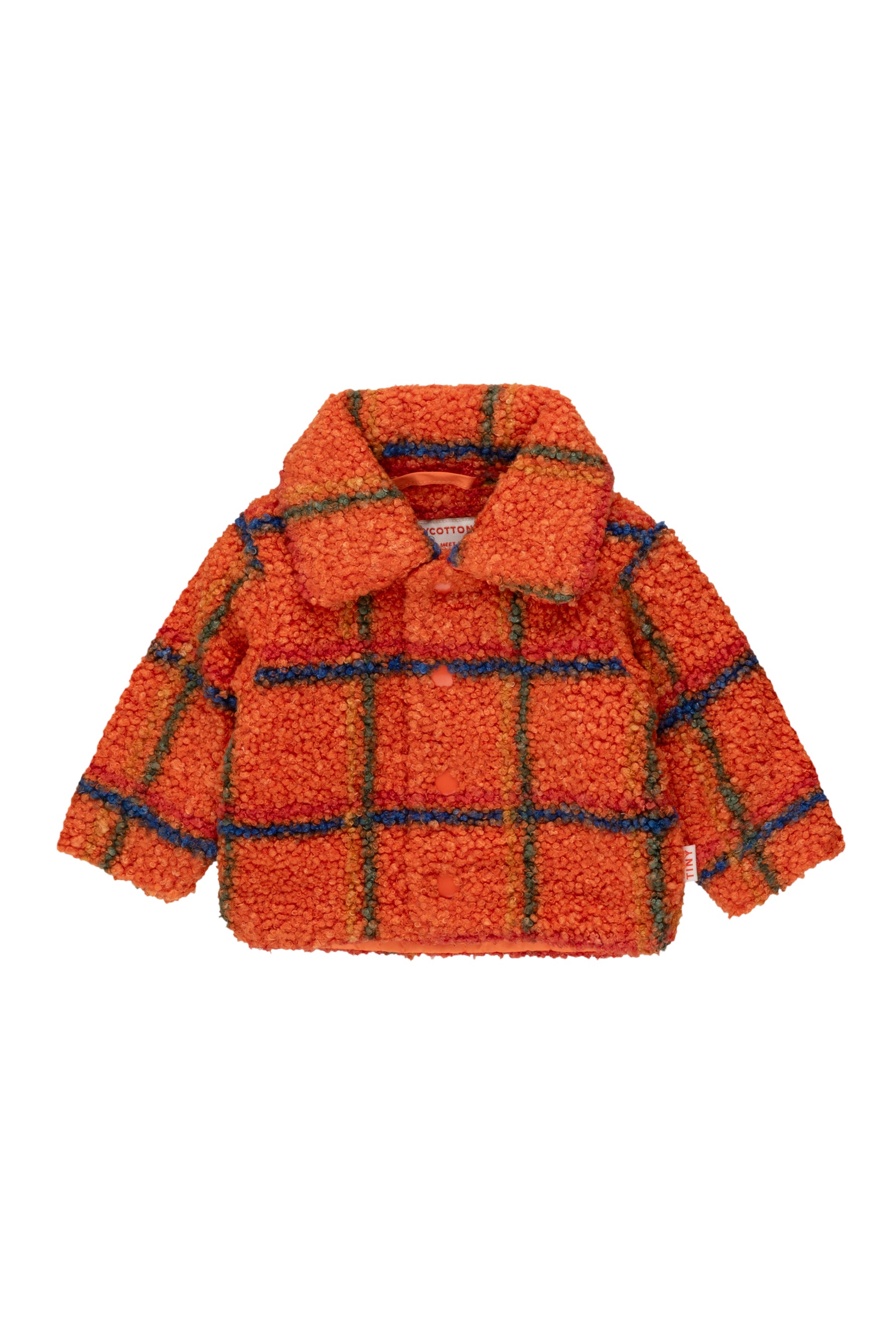 Wir präsentieren die karierte Sherpa-Babyjacke! Mit diesem kuscheligen Sherpa in leuchtendem Orange fallen Sie diesen Winter in der verschneiten Landschaft von Chamonix garantiert auf. Mit Druckknopfverschluss vorne und Kragen ist sie ein Must-have für jede Wintergarderobe. Sind Sie bereit für Ihr nächstes Abenteuer?