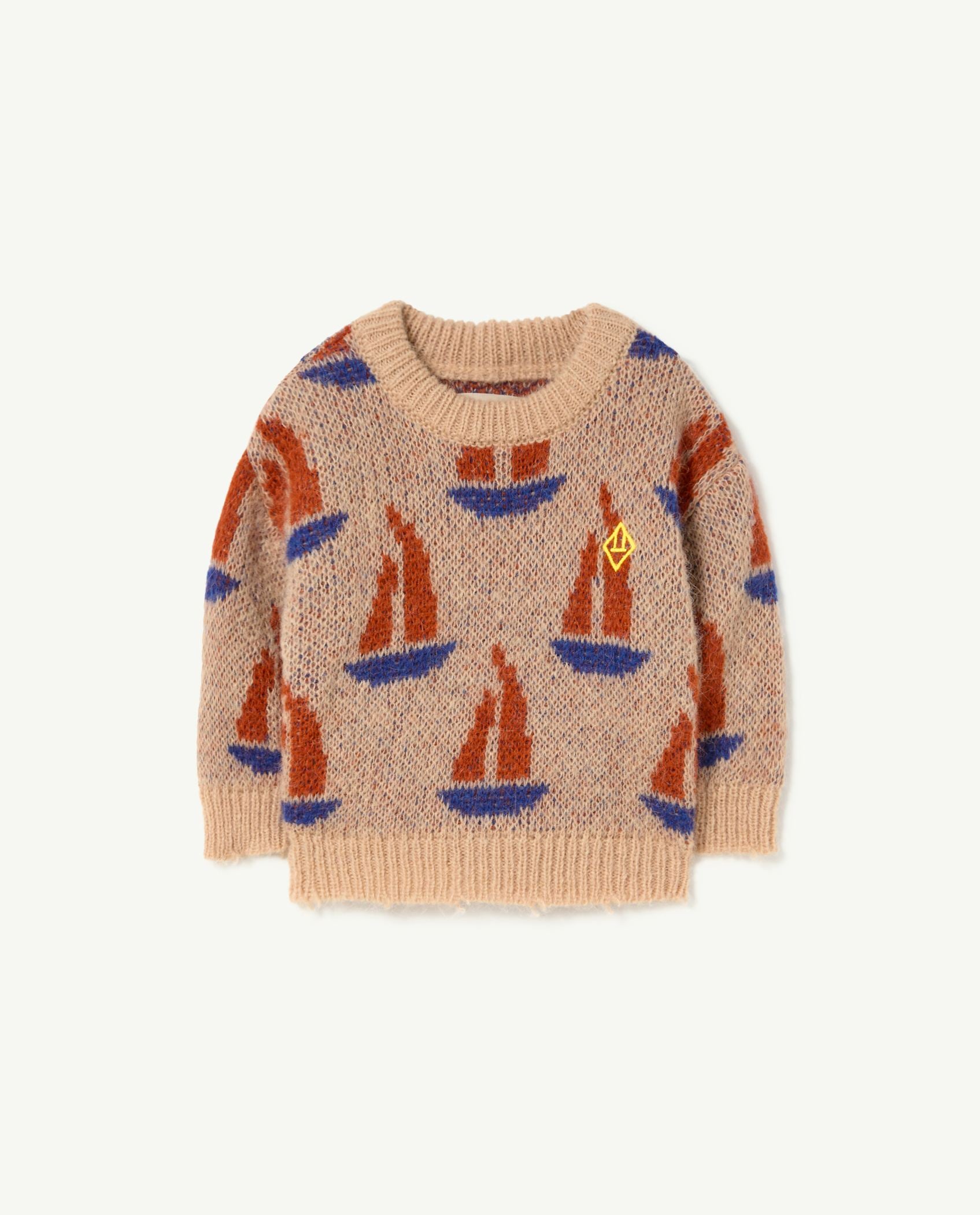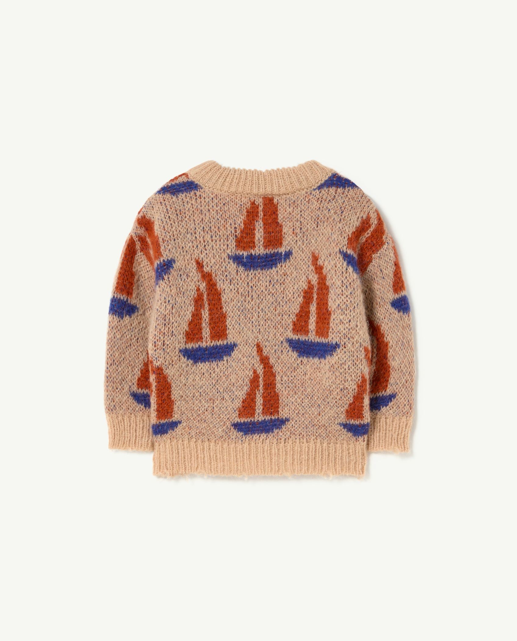 Der beigefarbene Bull Babypullover ist aus Trikot gestrickt und für Babys von 6 bis 18 Monaten geeignet. Dieser Pullover wärmt jeden Tag und sein Muster zeigt hübsche Segelschiffe.