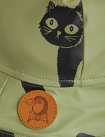 Rain hat with an all-over Catz print made from a blend of recycled polyester and polyurethane. The hat features taped seams and is wind and waterproof with 10 000 mm water columns. A string under the chin keeps the hat secure even during the most intense wet weather exploration.