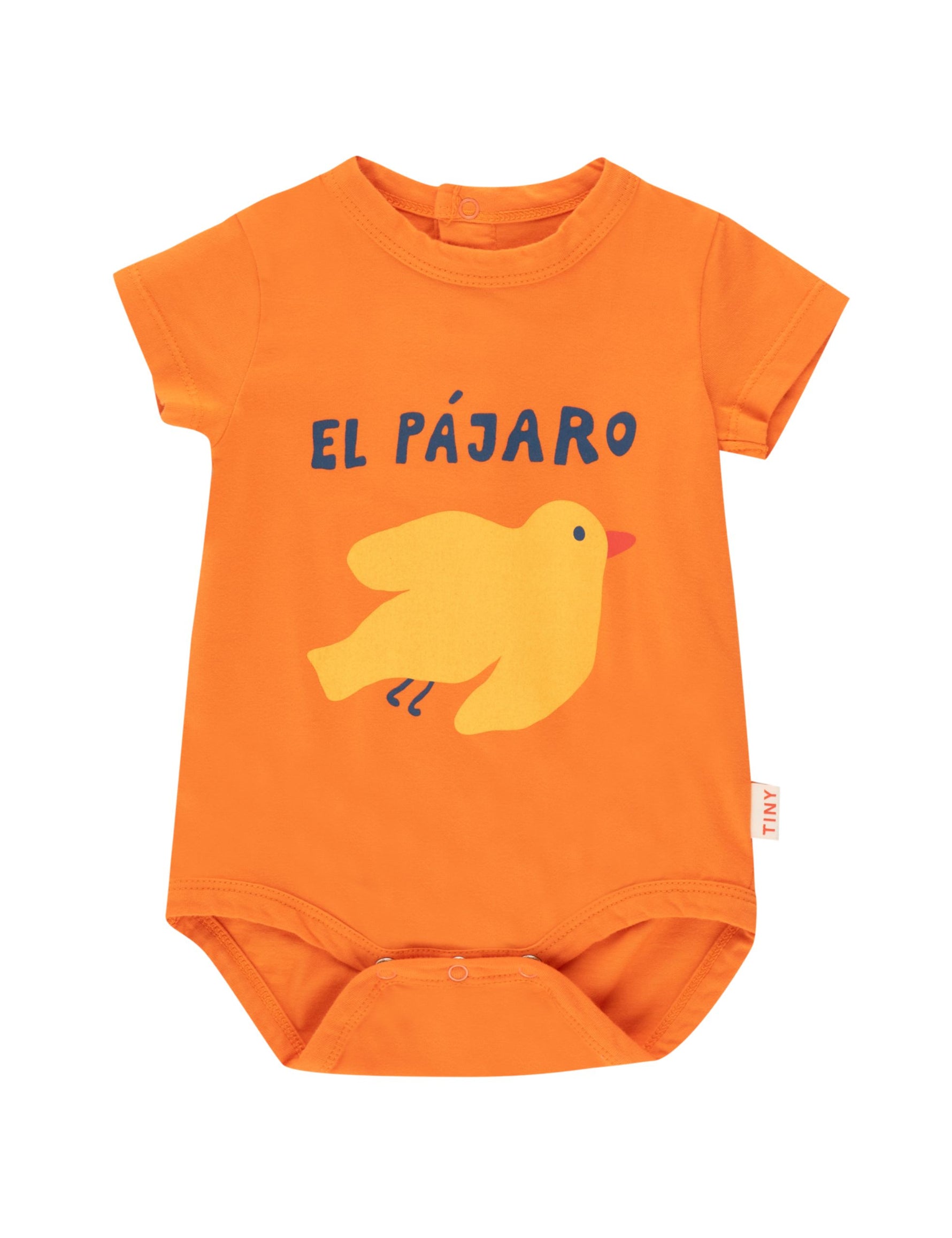 El pájaro del Paraíso Tiny is the main character of this body. This body is crafted from organic cotton jersey with a very soft feel, thanks to the garment dye process. It features our El Pájaro print.It comes with short sleeves and snap fastenings on the back and crotch for easy dressing.