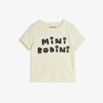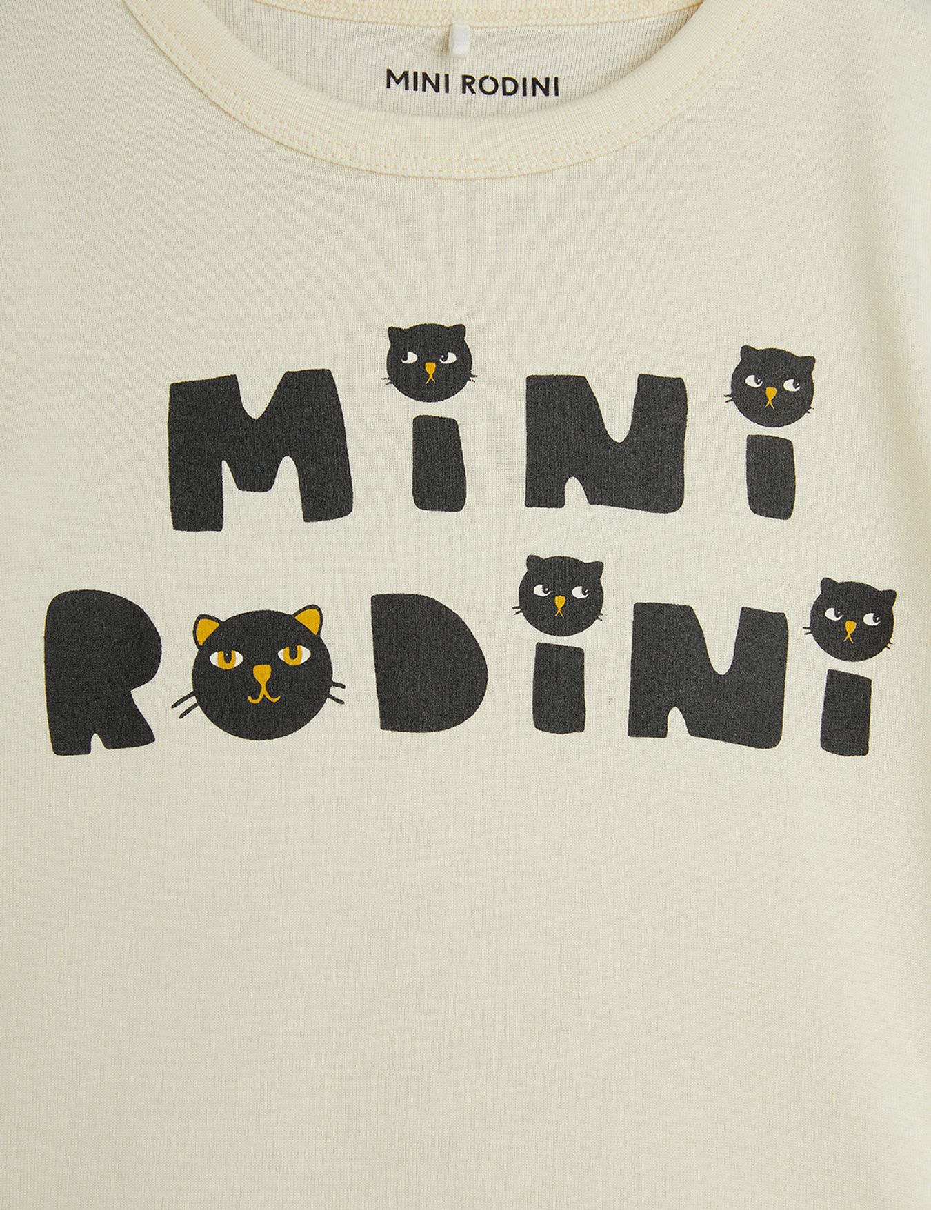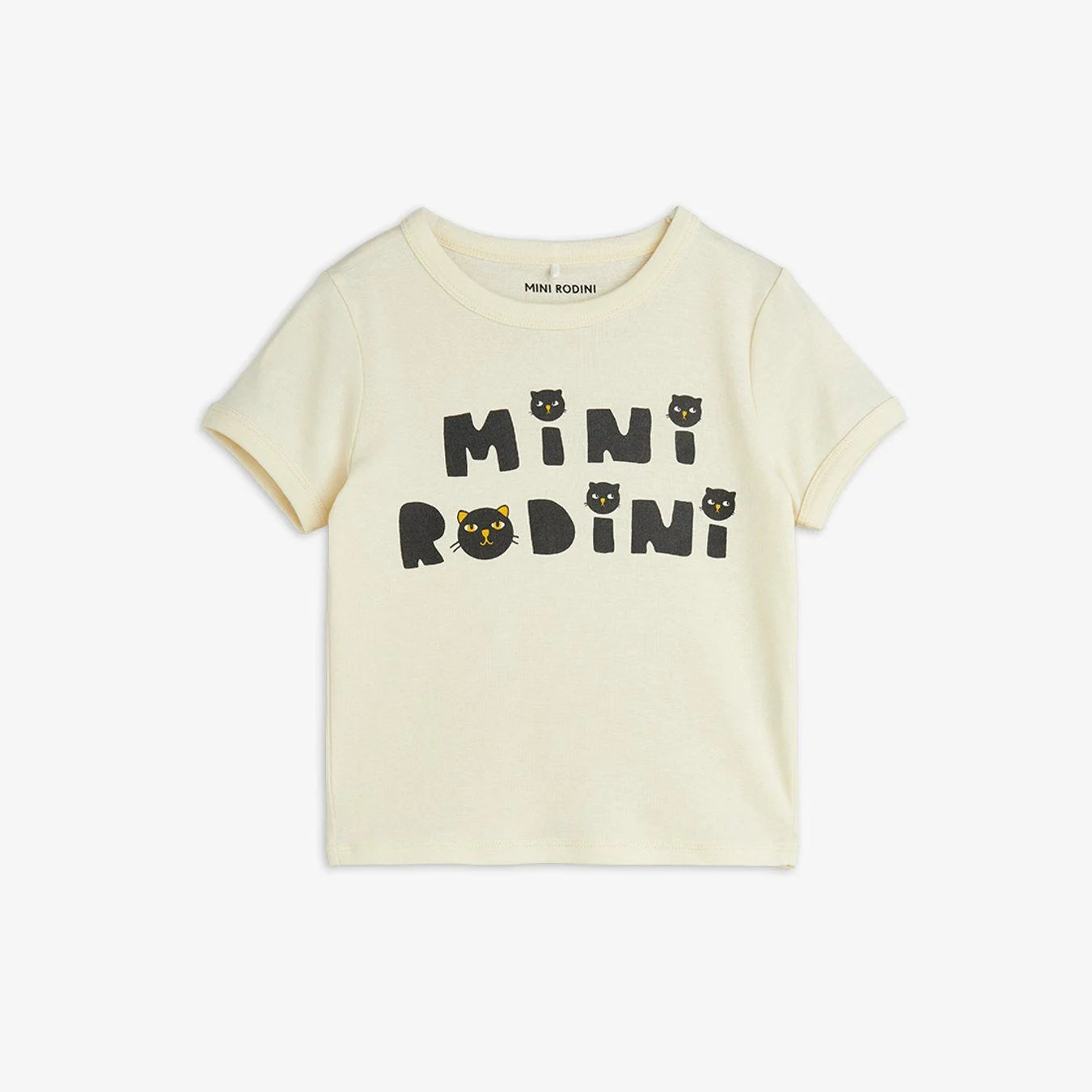 Short sleeved T-shirt with Mini Rodini cats print in front, made from 100 % GOTS certified organic cotton. Cut for a tighter fit and designed with a ribbed collar.