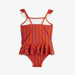 Swimsuit made from Recycled Nylon with stretch. Designed with winged shoulder straps and skirt. The fabric creates a physical barrier against the sun's UV rays with the highest ultraviolet protection factor, UPF 50+.
