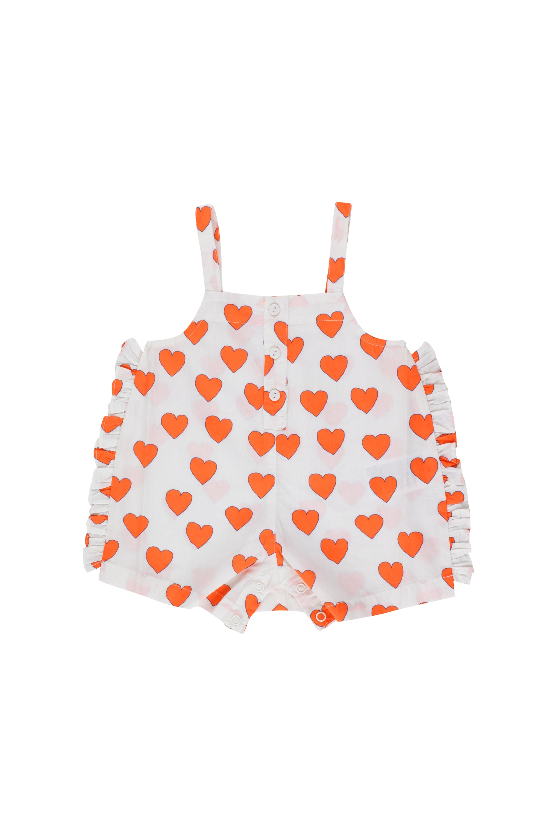 TINY's Hearts Baby Dungaree in classic off-white is a delightful and practical choice for your little one's wardrobe. Crafted from soft cotton poplin with snaps for easy dressing, it ensures both comfort and durability. The off-white color provides a versatile canvas for the playful heart print, making it perfect for everyday adventures and moments of play. These dungarees add a touch of sweetness to your baby's look.