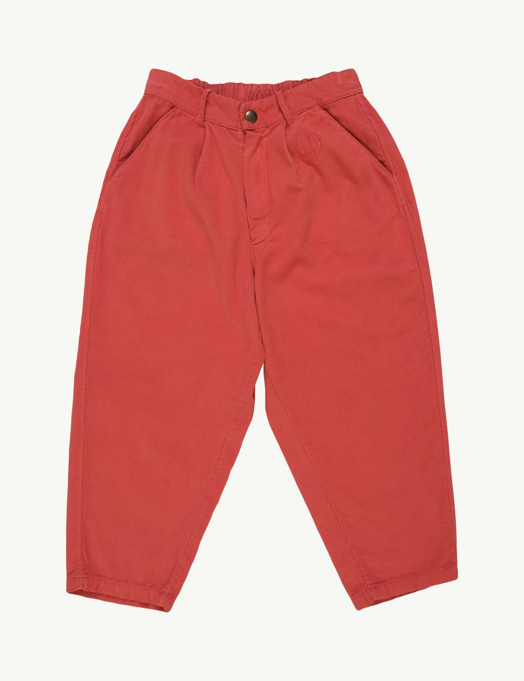 Baggy fit chino in light organic cotton corduroy fabric and a Maed for Mini embroidery at the front. The chino features a comfortable elastic waistband with belt loops.