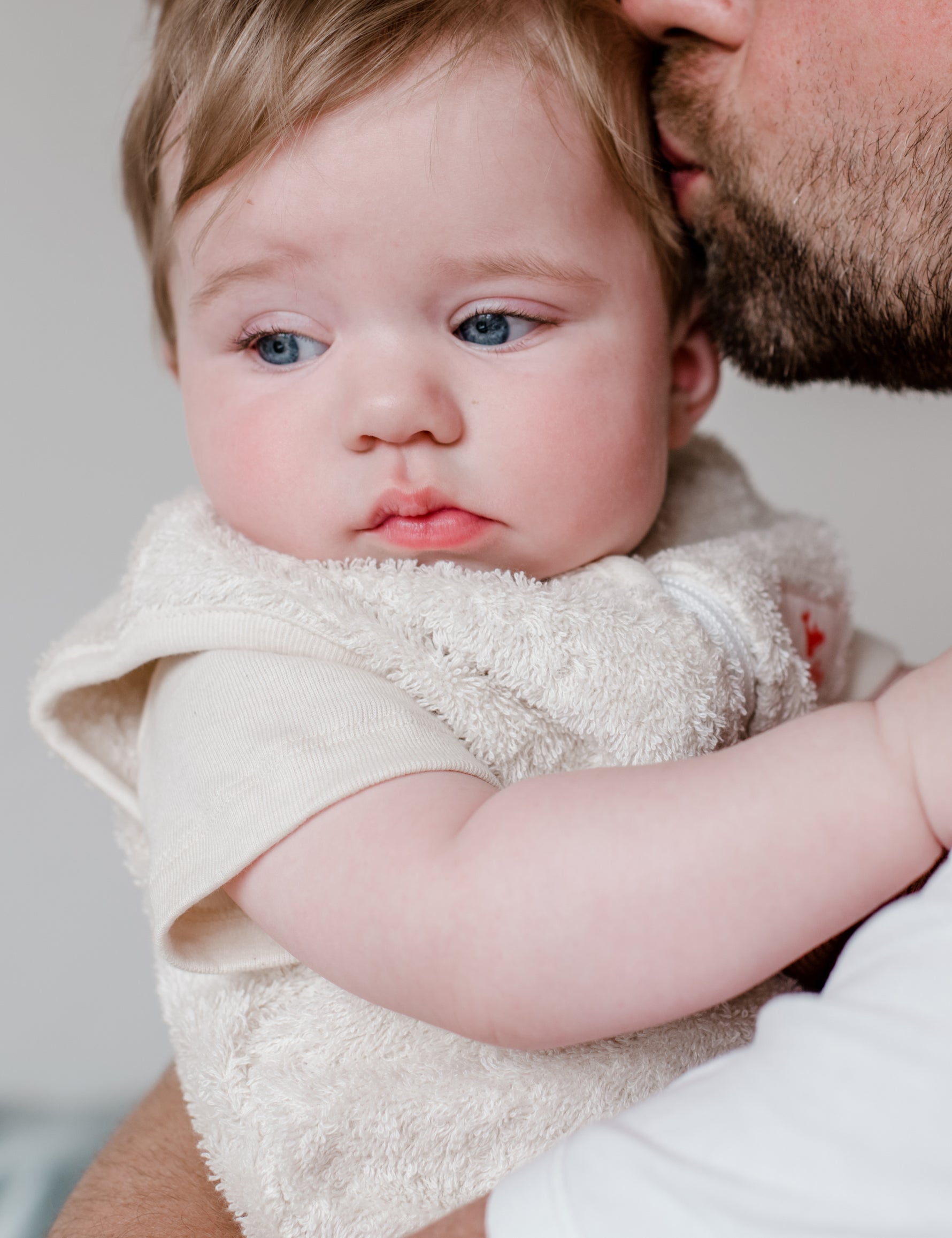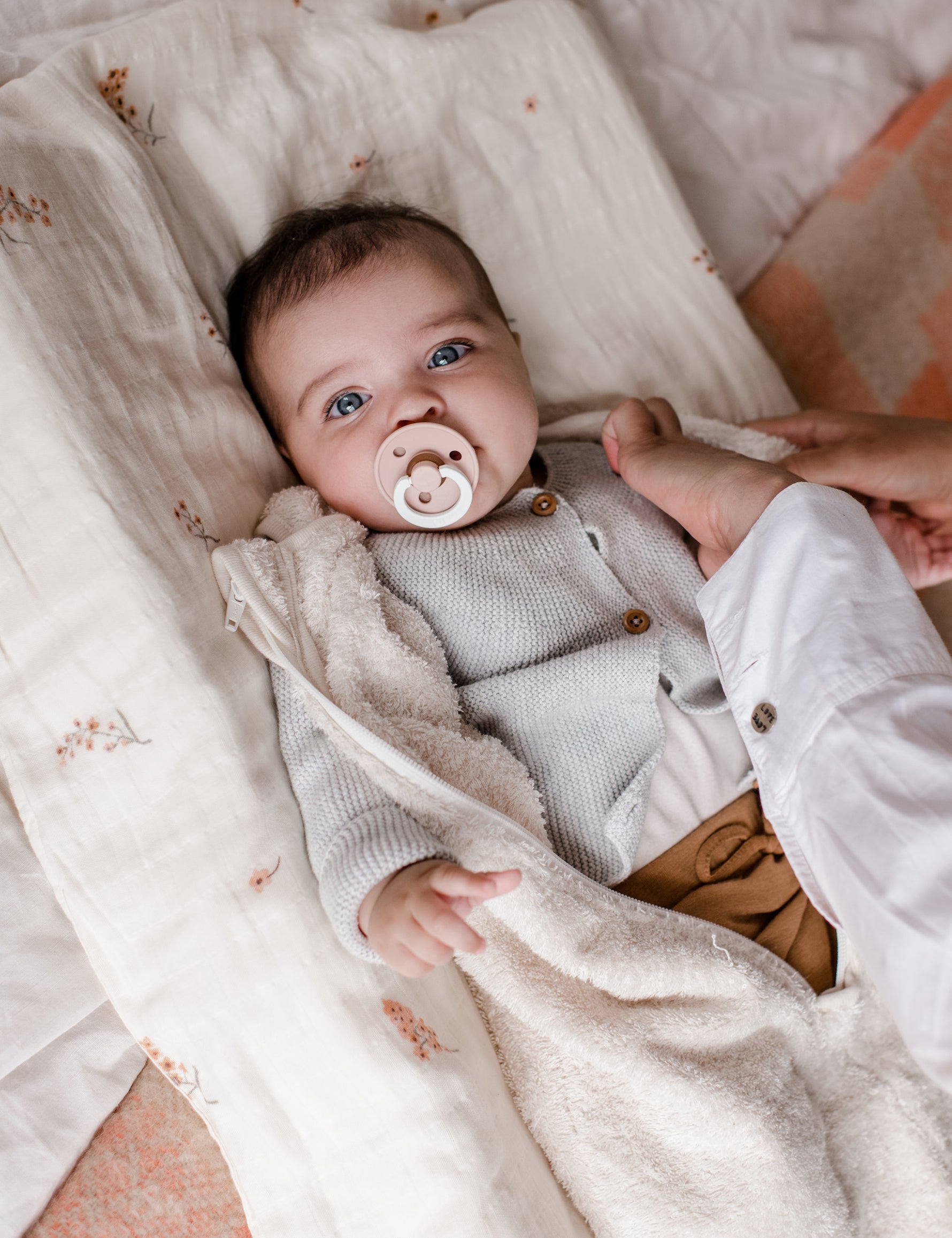 Closing the circle This sleeping bag is part of a bigger circular project. After it has kept a lot of babies warm and safe during their sleep it may become unusable. Instead of disposing of it. We are going to recycle the fabric. For us, this means shredding it into small fibers and spinning them into yarn again. We will use this fiber to make new products. That’s the circle of life.